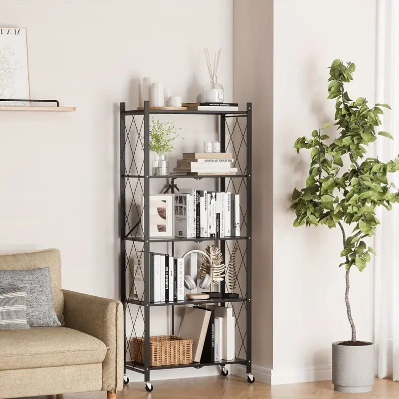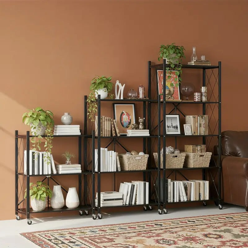 Es ist extrem platzsparend, Zusammengeklappt ist das faltbare Regal nur 10 cm dick und benötigt nur minimalen Platz. Ideal für kleine Wohnungen oder enge Räume, passt es auch im Kofferraum deines Autos als temporäres Regal im Freien.